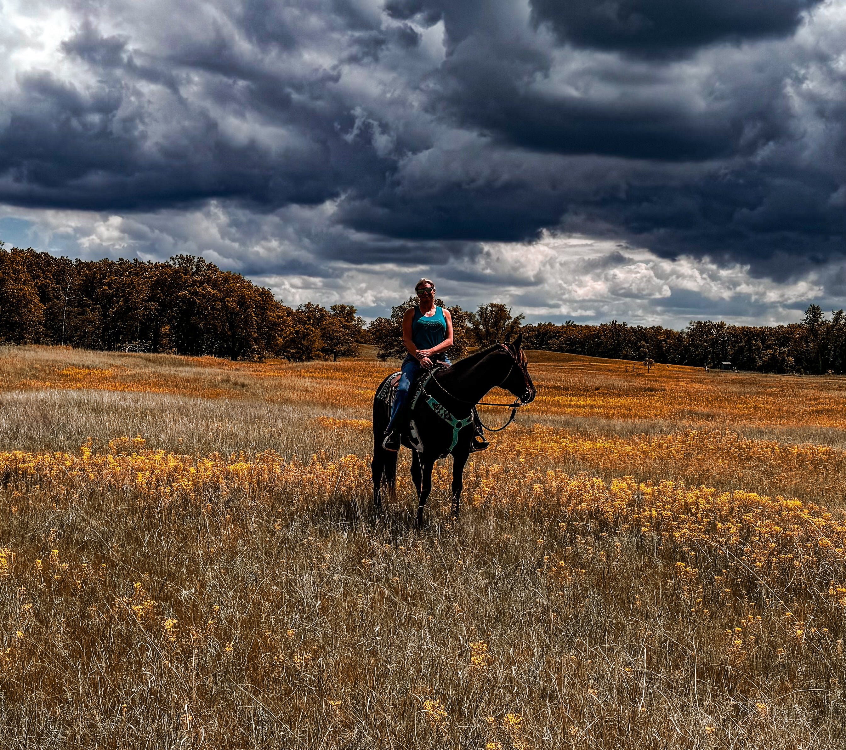 I started Redneck Fancy Tack out of my love for horses and obsession with horse tack. I live on a hobby farm near Walcott, ND, with my family and my little herd consisting of four horses (Rosie, Scout, Grace and Warden), one donkey (DJ), one big lab mix (Copper) and a ragdoll kitty (Cash). In the Fall of 2022, I resigned from my role as director of a local university to chase my passion full-time.