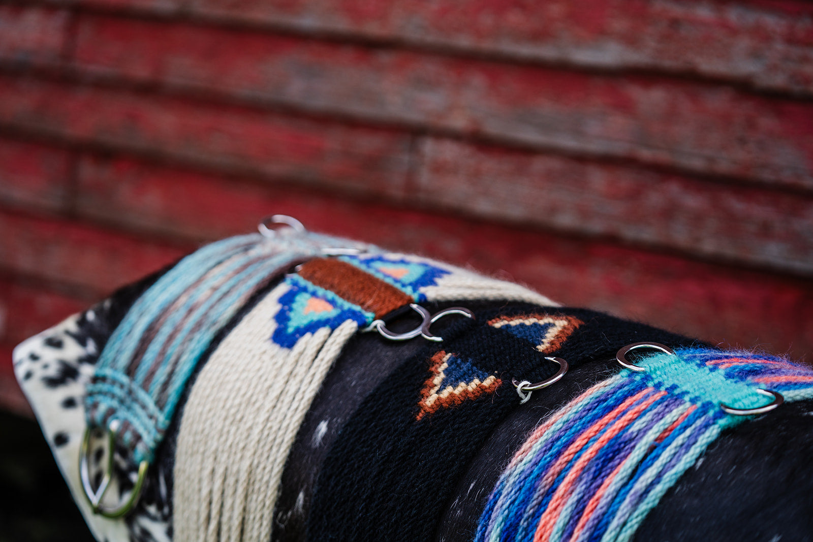 Bringing you all the colors! This beautiful cinch will add playfulness and color to your tack set. Running barrels or riding through the badlands, you can’t go wrong with a beautiful, tough, mohair cinch. Get gritty but ride pretty.